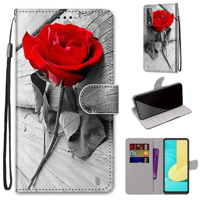 For LG Stylo 7 5G Coloured Drawing Cross Texture Horizontal Flip PU Leather Case with Holder & Card Slots & Wallet & Lanyard(Wood Red Rose)