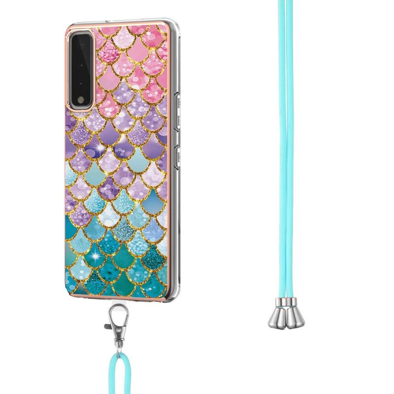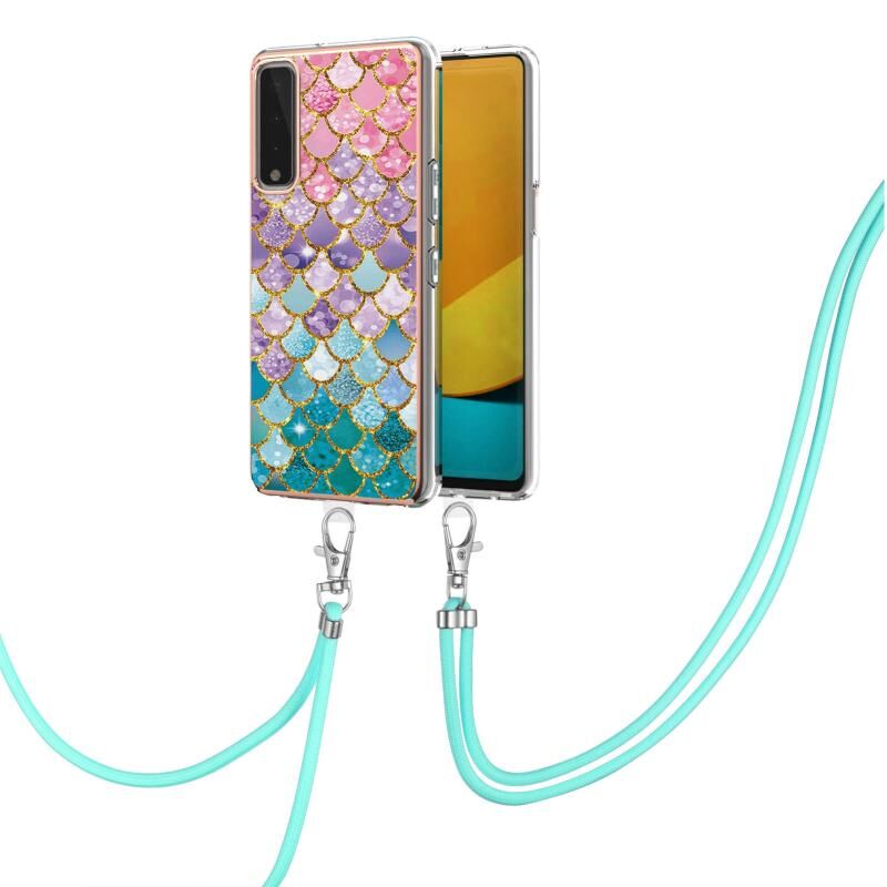 For LG Stylo 7 5G Electroplating Pattern IMD TPU Shockproof Case with Neck Lanyard(Colorful Scales)