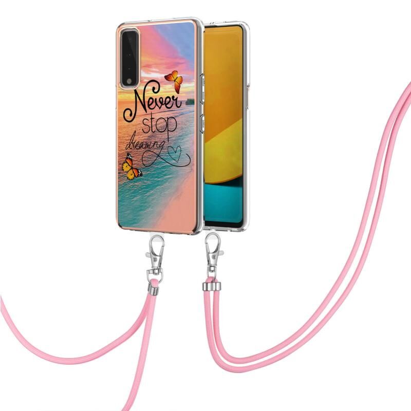 For LG Stylo 7 5G Electroplating Pattern IMD TPU Shockproof Case with Neck Lanyard(Dream Chasing Butterfly)