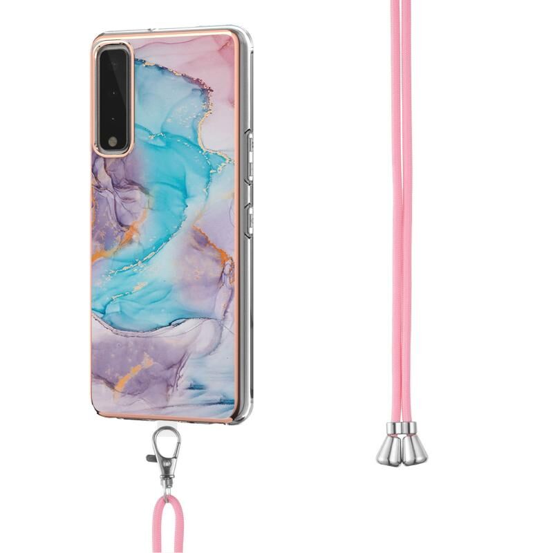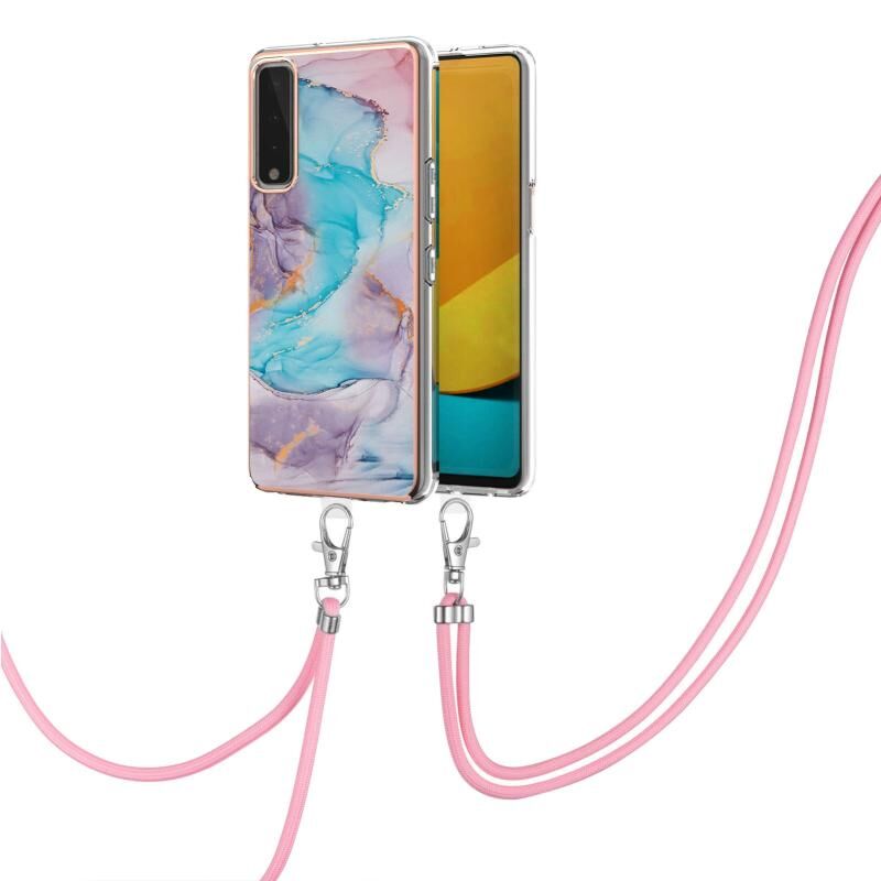 Θήκη προστασίας για LG Stylo 7 5G με σχέδιο επιμετάλλωσης IMD TPU, ανθεκτική σε κρούσεις, με κορδόνι λαιμού (Λευκό Μάρμαρο Γαλαξία).