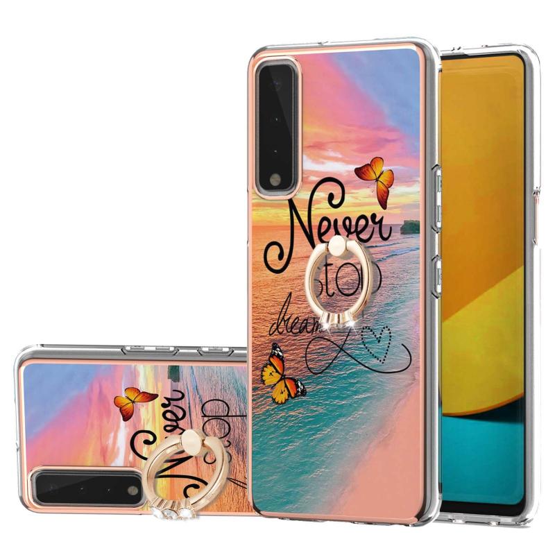 Θήκη προστασίας για LG Stylo 7 5G με σχέδιο επιμετάλλωσης IMD TPU, ανθεκτική σε κρούσεις με δαχτυλίδι στήριξης και ρητίνες (Όνειρο Κυνηγώντας Πεταλούδα)