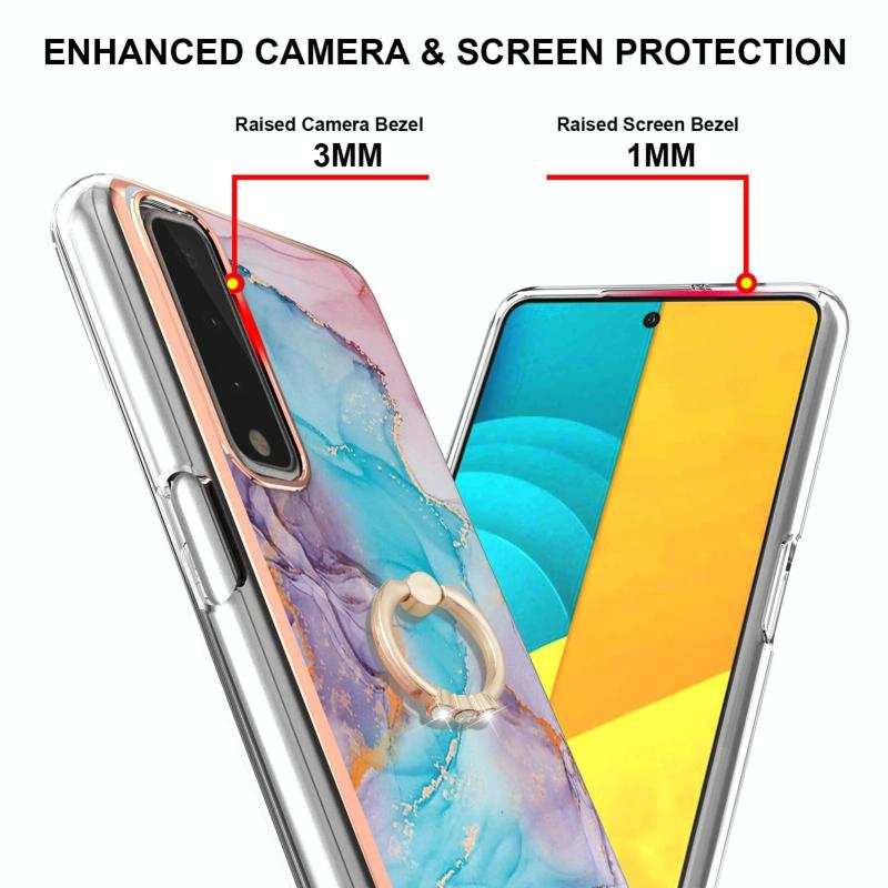Θήκη προστασίας για LG Stylo 7 5G με σχέδιο επιμετάλλωσης IMD TPU, ανθεκτική σε κρούσεις με δαχτυλίδι στήριξης και ρητίνες (Γαλαξιακό Μπλε Μάρμαρο)