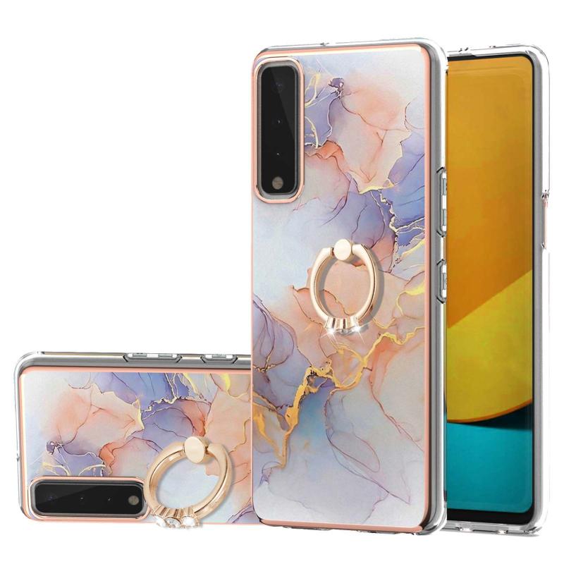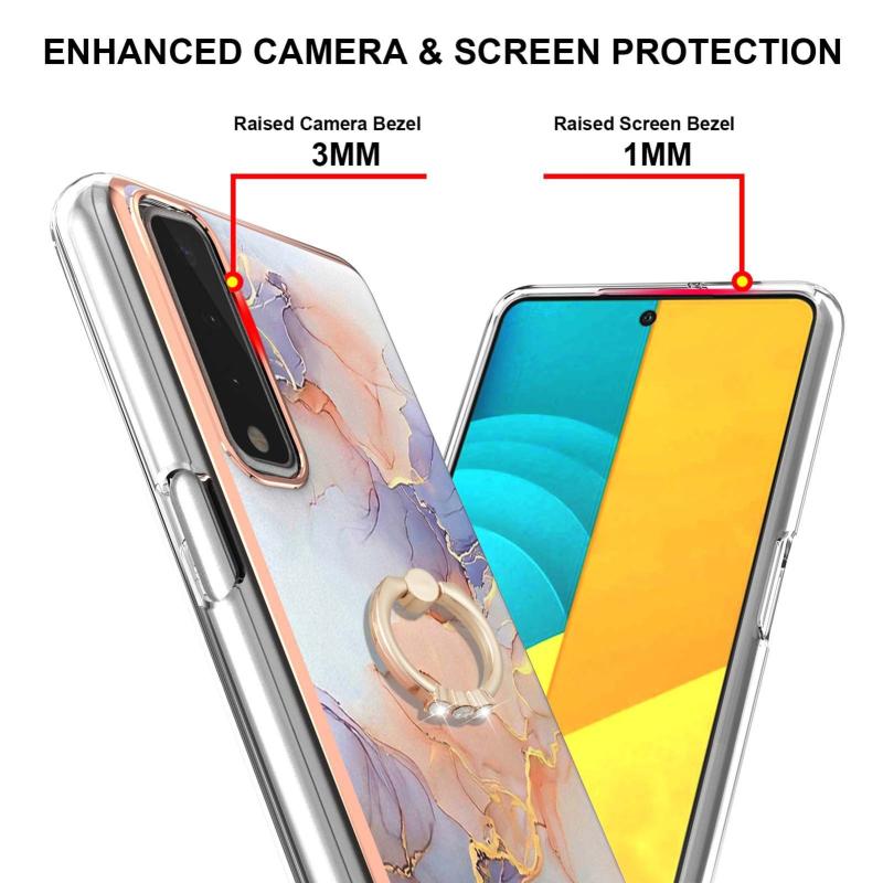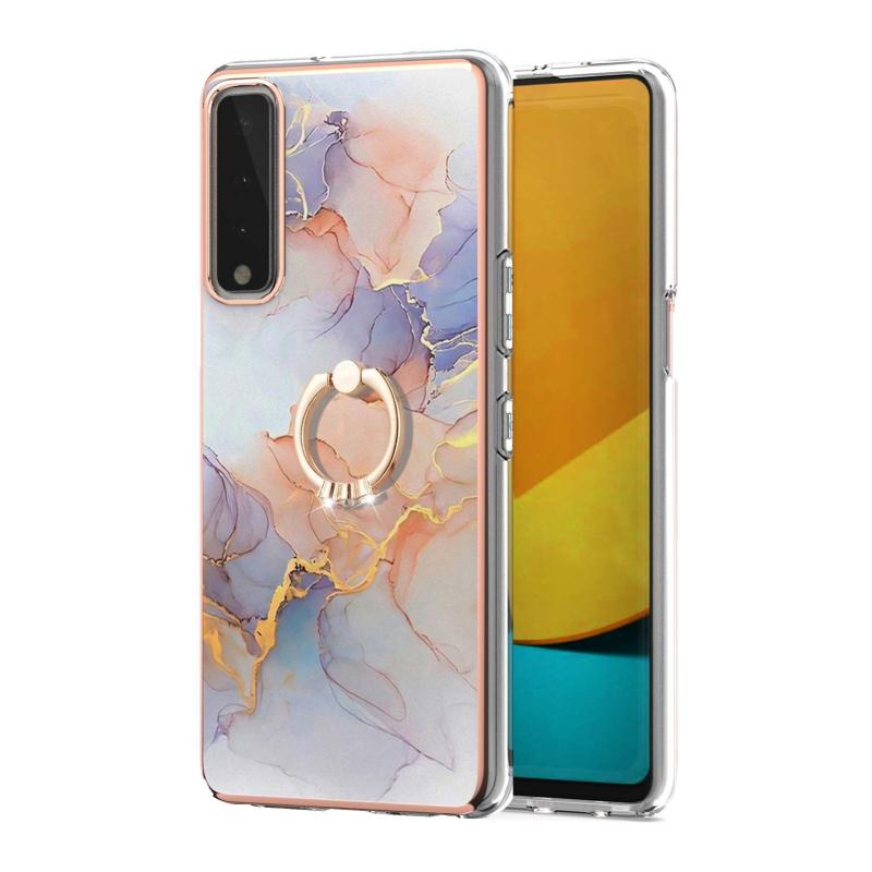 Θήκη προστασίας για LG Stylo 7 5G με σχέδιο επιμετάλλωσης IMD TPU, ανθεκτική σε κρούσεις με δαχτυλίδι στήριξης και ρητίνες (Λευκό Μάρμαρο Γαλαξία).