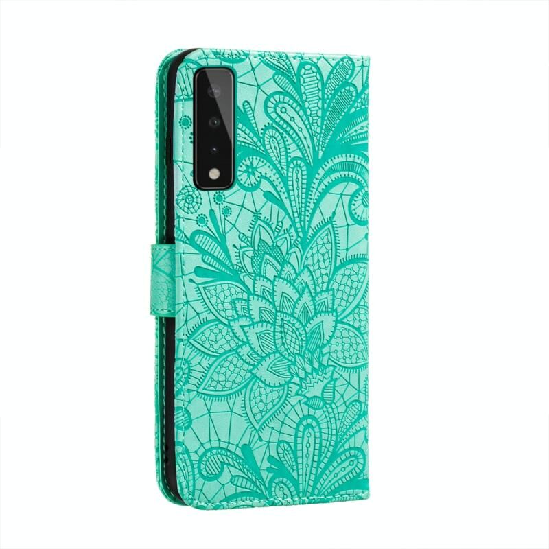 Για LG Stylo 7 5G Lace Flower ανάγλυφο μοτίβο οριζόντια Flip δερμάτινη θήκη με υποδοχές για κάρτες & υποδοχές & πορτοφόλι & πλαίσιο φωτογραφιών (πράσινο)