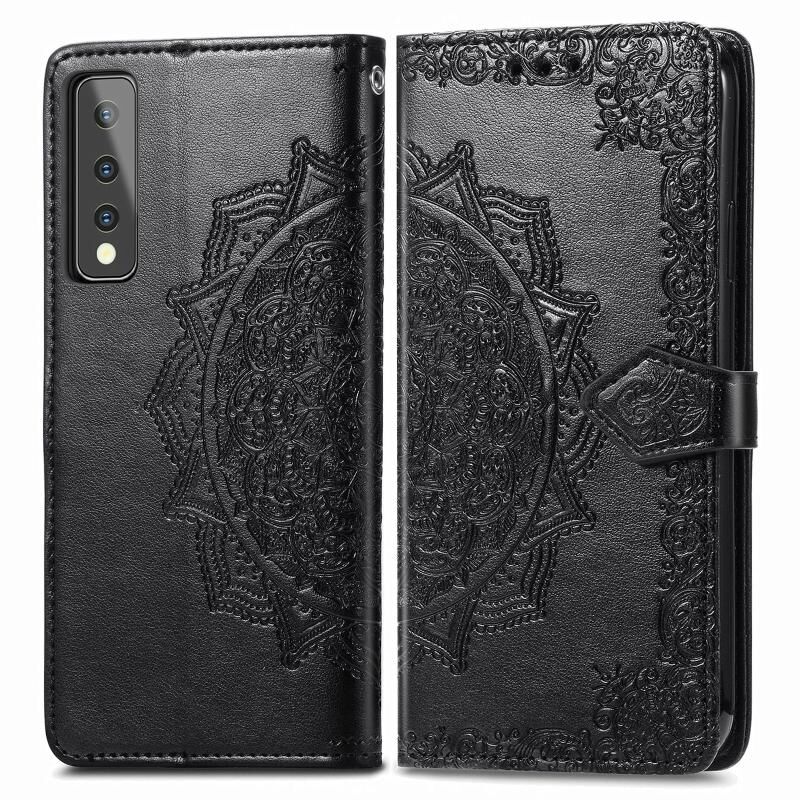 Για LG Stylo 7 Mandala λουλούδι ανάγλυφο οριζόντια Flip δερμάτινη θήκη με στήριγμα / υποδοχή για κάρτες / πορτοφόλι / κορδόνι (μαύρο)