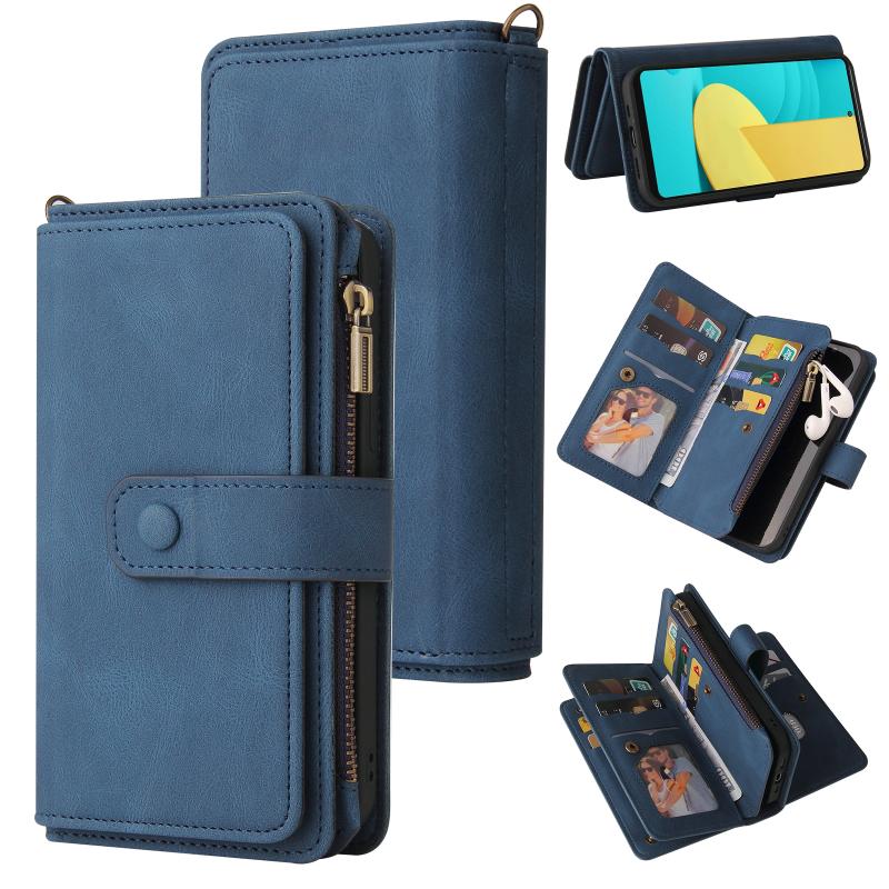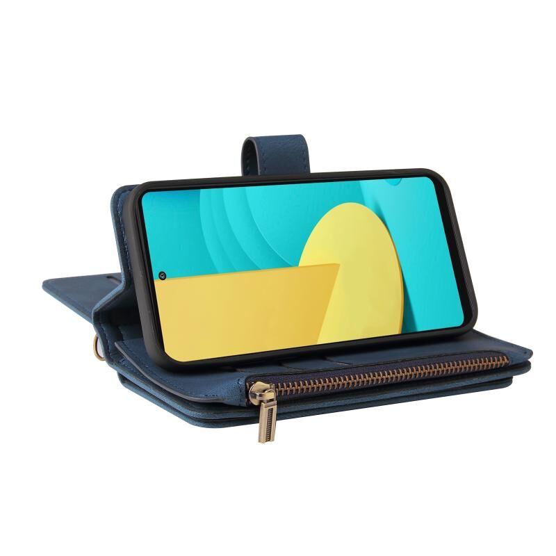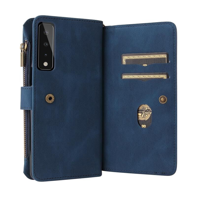 Θήκη δέρματος οριζόντιας αναδίπλωσης PU + TPU για LG Stylo 7 / Stylo 7 5G με βάση & υποδοχή 15 καρτών & πορτοφόλι & τσέπη με φερμουάρ & κορδόνι (Μπλε)
