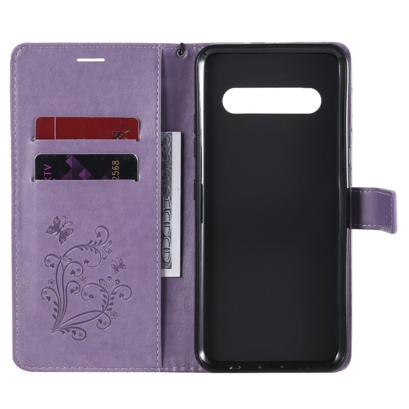 Θήκη δέρματος οριζόντιας αναδίπλωσης με σχέδιο 3D πεταλούδων και ανάγλυφο για LG V60, με βάση, θήκη καρτών και πορτοφόλι (Πράσινο)