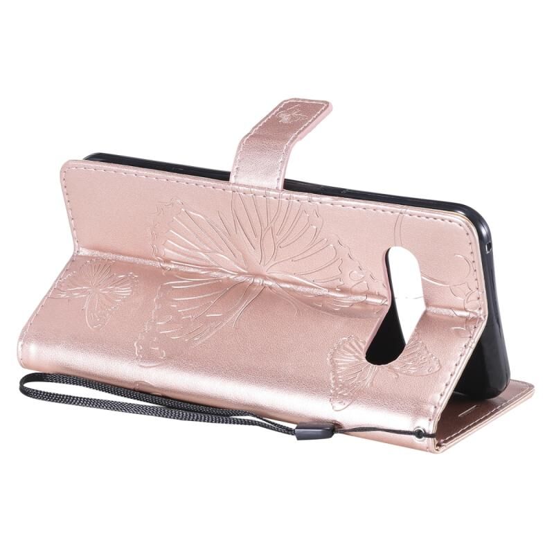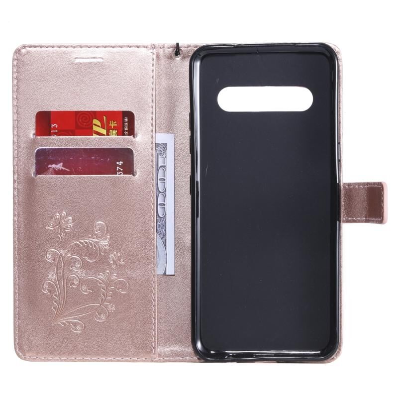 Θήκη δέρματος οριζόντιας αναδίπλωσης με σχέδιο 3D πεταλούδων και ανάγλυφο για LG V60, με βάση, θήκη καρτών και πορτοφόλι (Πράσινο)