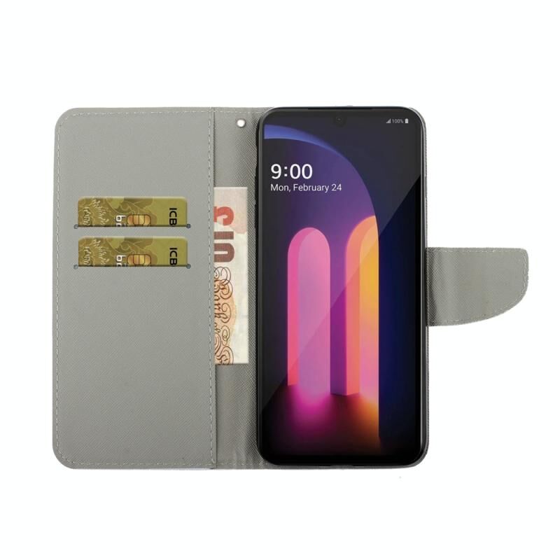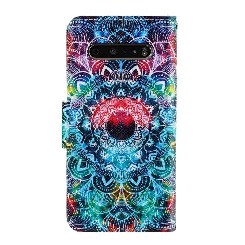Θήκη δέρματος οριζόντιας αναδίπλωσης με σχέδιο Mandala για LG V60, με βάση στήριξης, θήκη για κάρτες και πορτοφόλι.