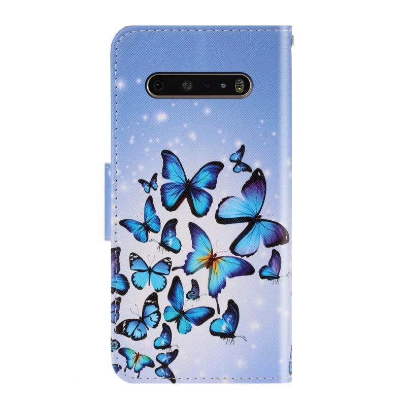 Θήκη δέρματος οριζόντιας αναδίπλωσης με σχέδια και χρώματα για LG V60 με βάση για κάρτες και πορτοφόλι (Πολλά πεταλούδες)