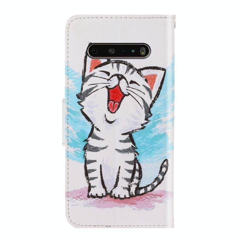 Θήκη δέρματος οριζόντιας αναδίπλωσης με σχέδιο για LG V60, με βάση & υποδοχή κάρτας & πορτοφόλι (Κόκκινο Στόμα Γάτας)