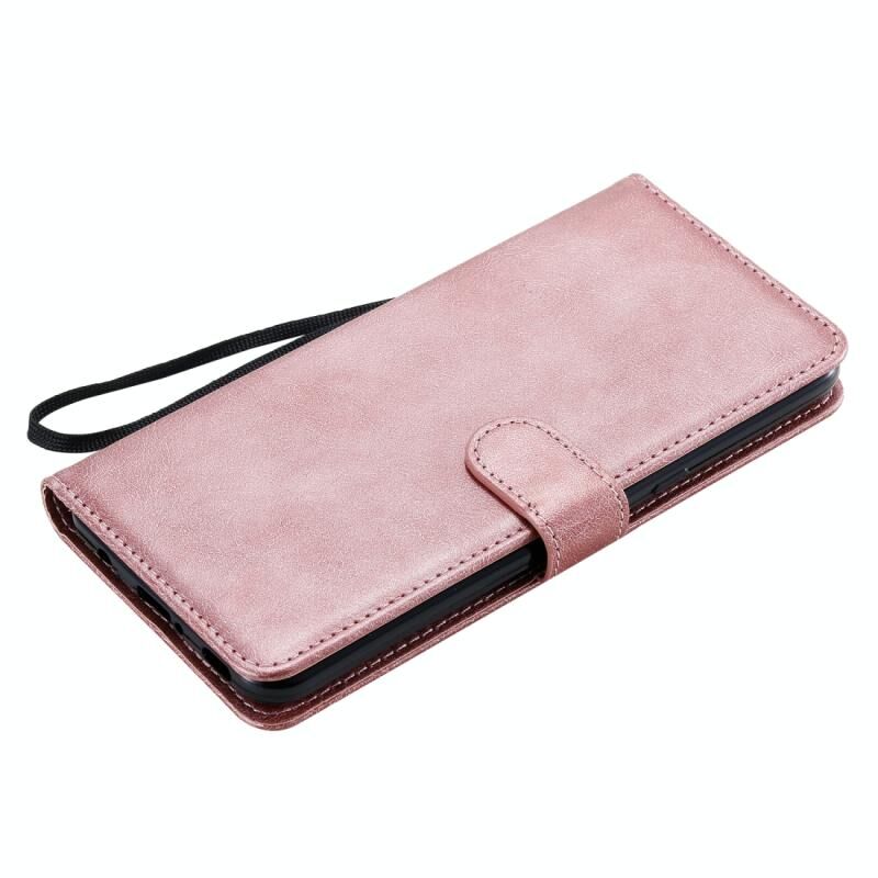 Για το LG V60 Αμιγές χρώμα οριζόντια Flip προστατευτική δερμάτινη θήκη με υποδοχές για κάρτες & θήκες & πορτοφόλι & κορδόνι (Rose Gold)