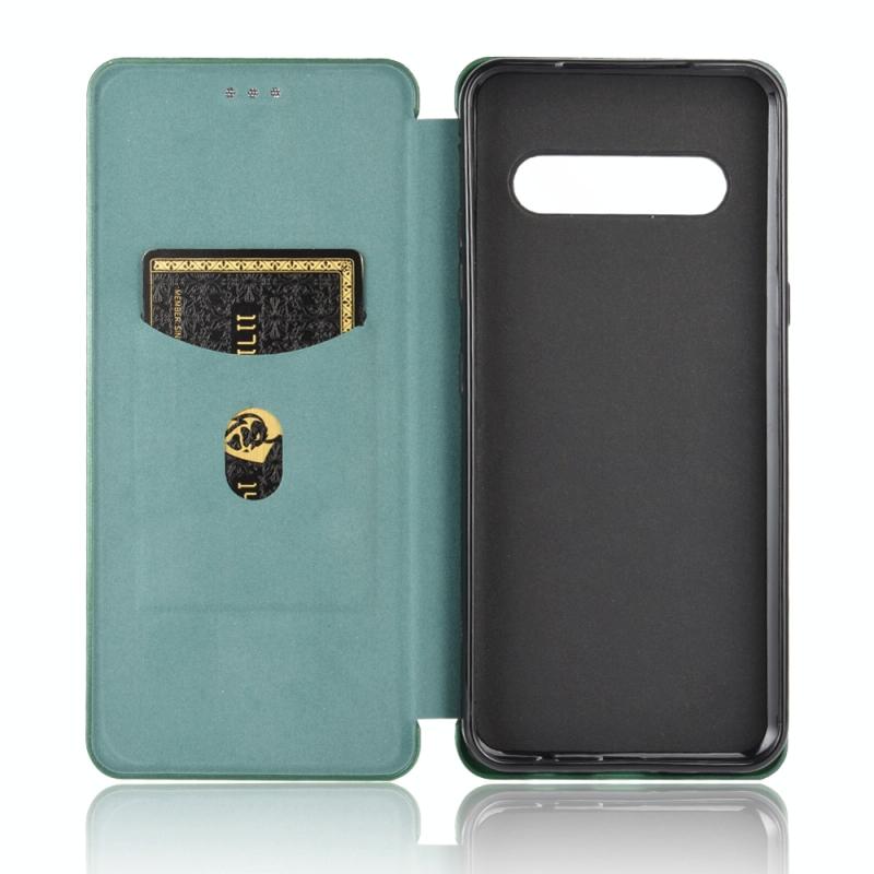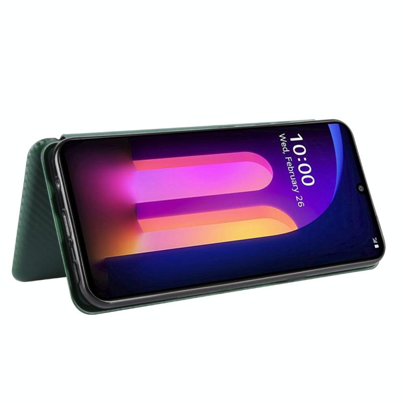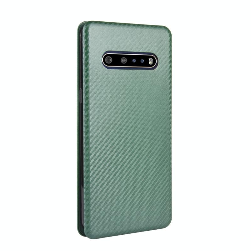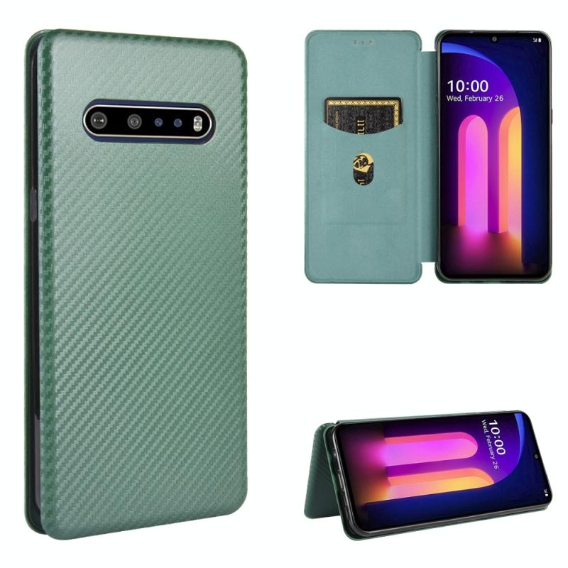 For LG V60 ThinQ 5G Carbon Fiber Texture Horizontal Flip TPU + PC + PU Leather Case with Card Slot(Green)