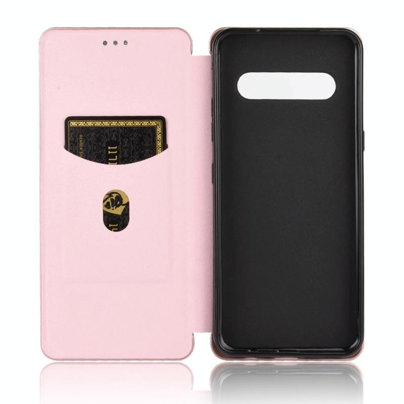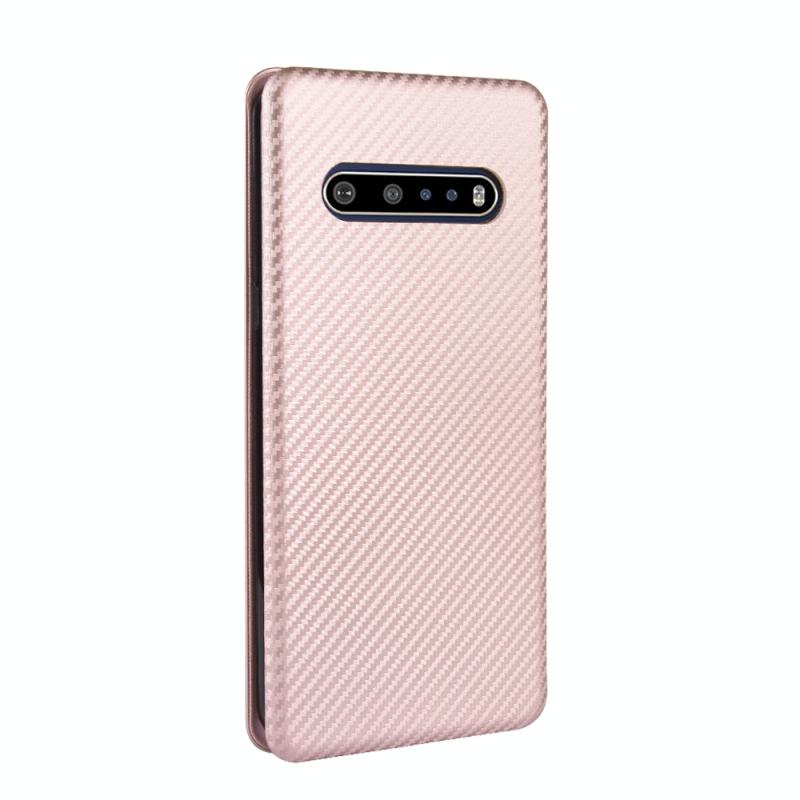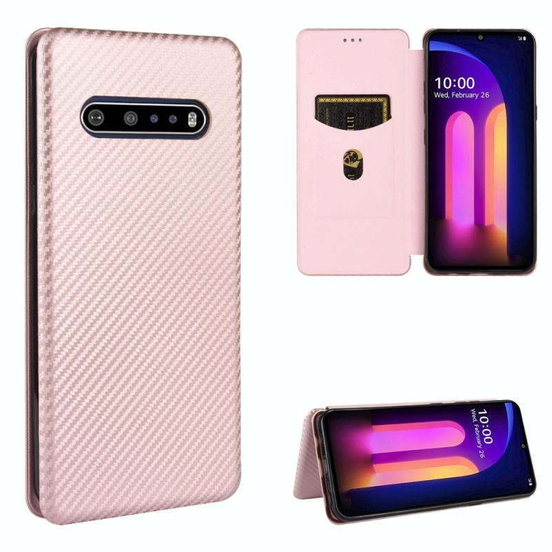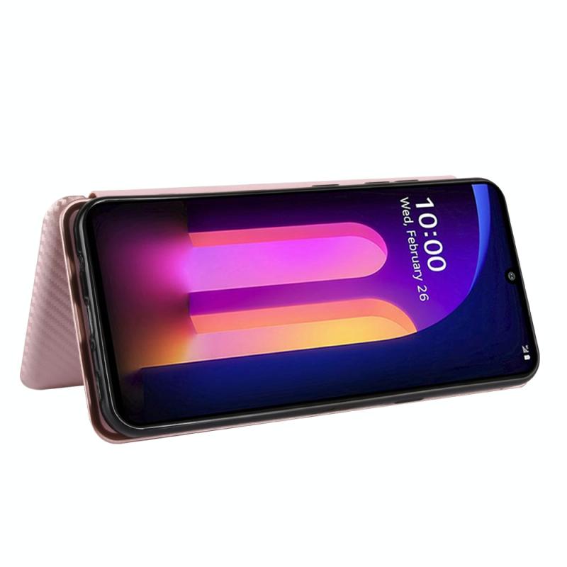 For LG V60 ThinQ 5G Carbon Fiber Texture Horizontal Flip TPU + PC + PU Leather Case with Card Slot(Pink)
