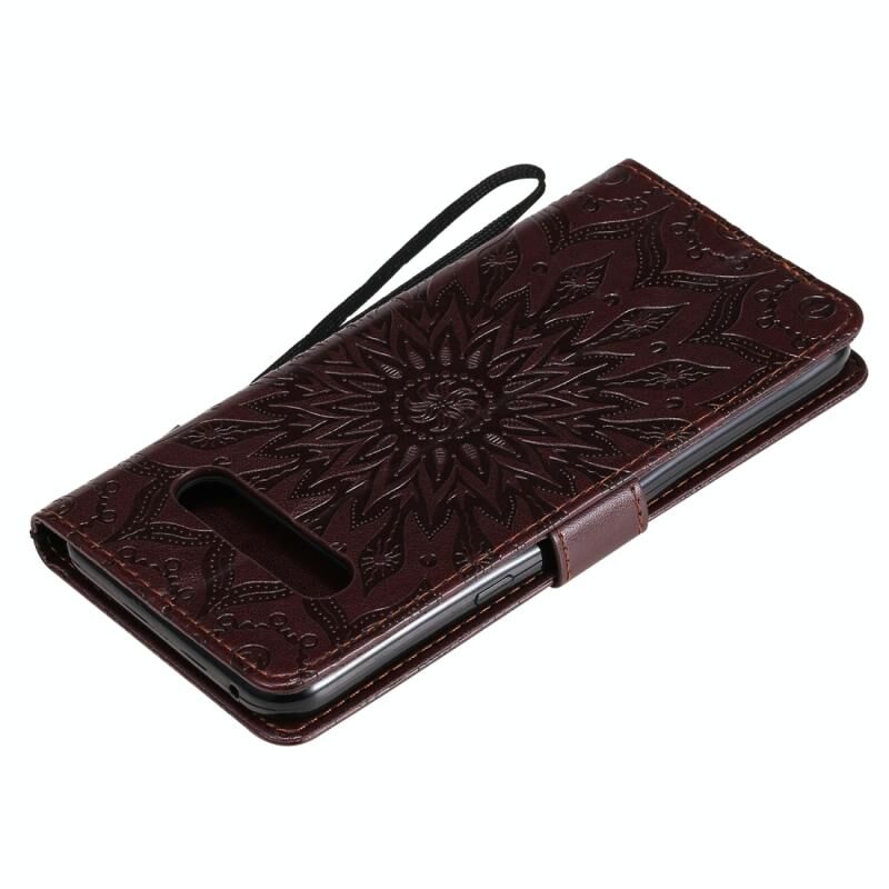 Για LG V60 ThinQ 5G ανάγλυφο ηλιοτρόπιο μοτίβο οριζόντια Flip PU δέρμα υπόθεση με κάτοχο & υποδοχές για κάρτες & πορτοφόλι & Lanyard (καφέ)