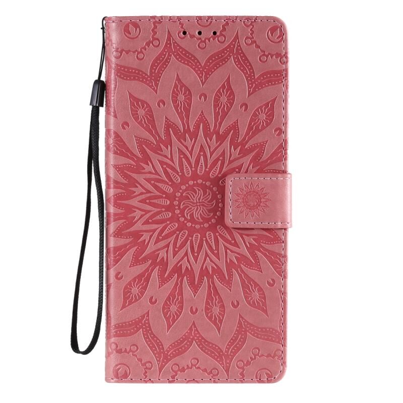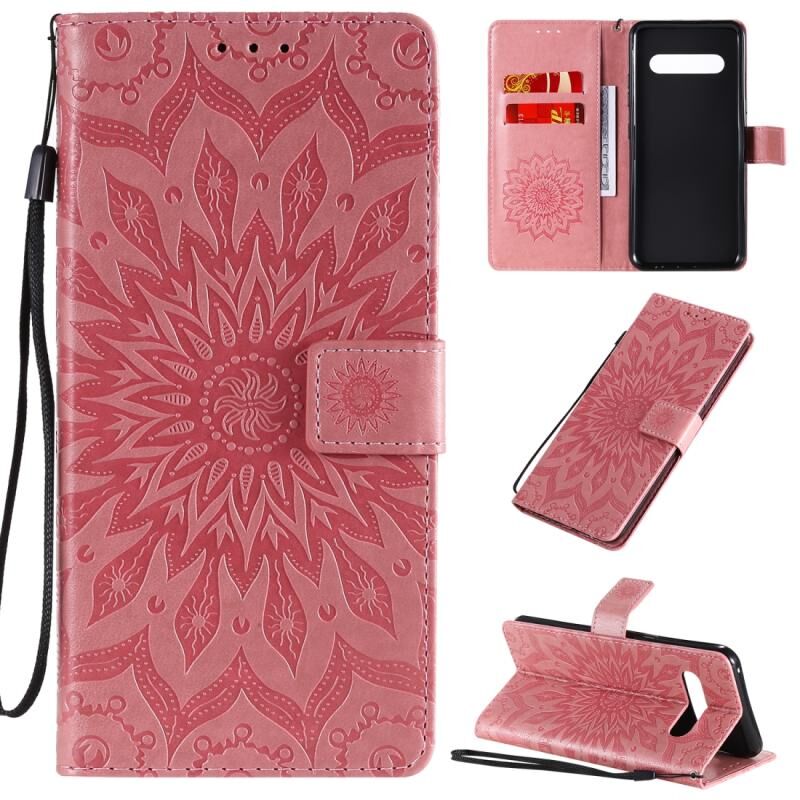 Για LG V60 ThinQ 5G ανάγλυφο ηλιοτρόπιο μοτίβο οριζόντια Flip PU δέρμα υπόθεση με κάτοχο & υποδοχές για κάρτες & πορτοφόλι & Lanyard (ροζ)