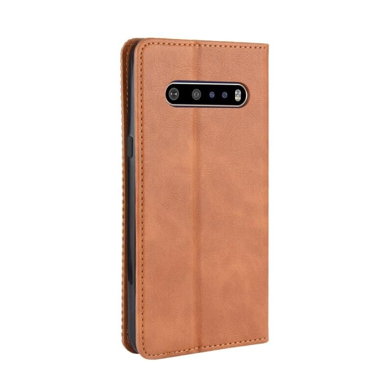 Για LG V60 ThinQ 5G Μαγνητική Αγκράφα Ρετρό Δερμάτινη Θήκη Flip με Υφή Crazy Horse, με Στήριξη & Θήκες Καρτών & Φωτοκορνίτσα (Μαύρο)