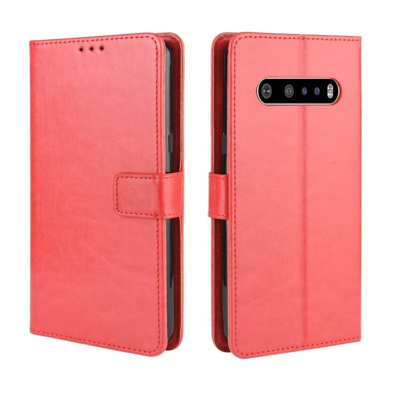Για LG V60 ThinQ 5G Retro Crazy Horse Υφή οριζόντια Flip δερμάτινη θήκη, με θήκη & υποδοχές για κάρτες & πλαίσιο φωτογραφιών (κόκκινο)