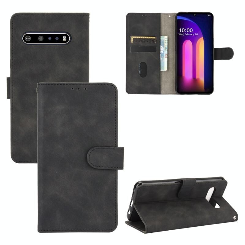 Για LG V60 ThinQ 5G Solid Color Skin Feel μαγνητική πόρπη οριζόντια Flip μοσχάρι υφή PU δέρμα υπόθεση με κάτοχο & υποδοχές για κάρτες & πορτοφόλι (μαύρο)