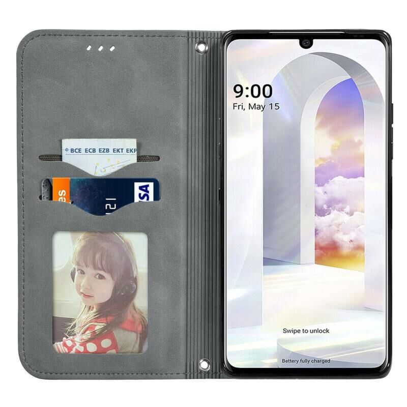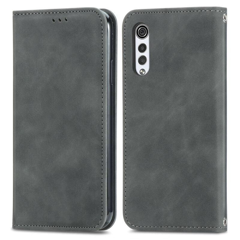 Για LG Velvet 2 Pro Retro Skin Feel Business Μαγνητική οριζόντια Flip δερμάτινη θήκη με υποδοχές για κάρτες & πορτοφόλι & πλαίσιο φωτογραφιών (γκρι)