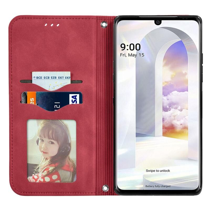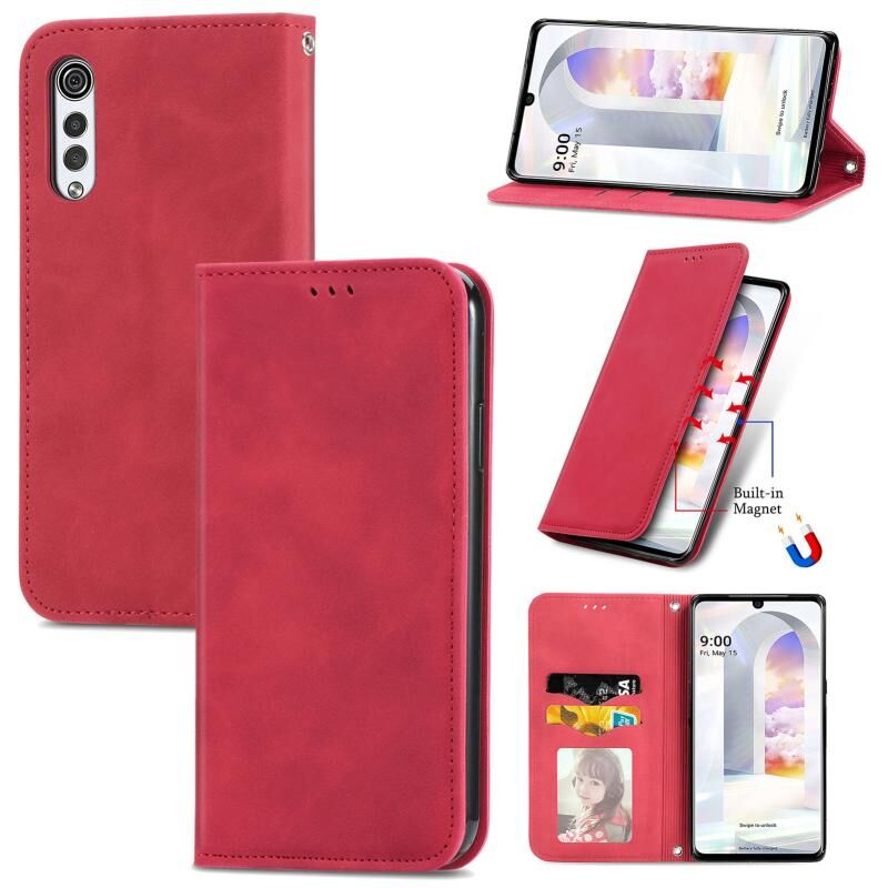 Για LG Velvet 2 Pro Retro Skin Feel Business Μαγνητική οριζόντια Flip δερμάτινη θήκη με υποδοχές για κάρτες & πορτοφόλι & κορνίζα φωτογραφιών (κόκκινο)