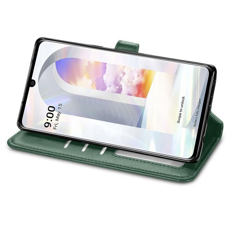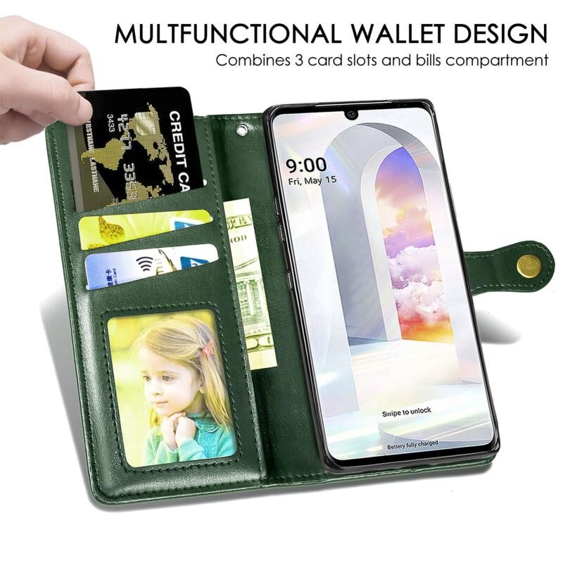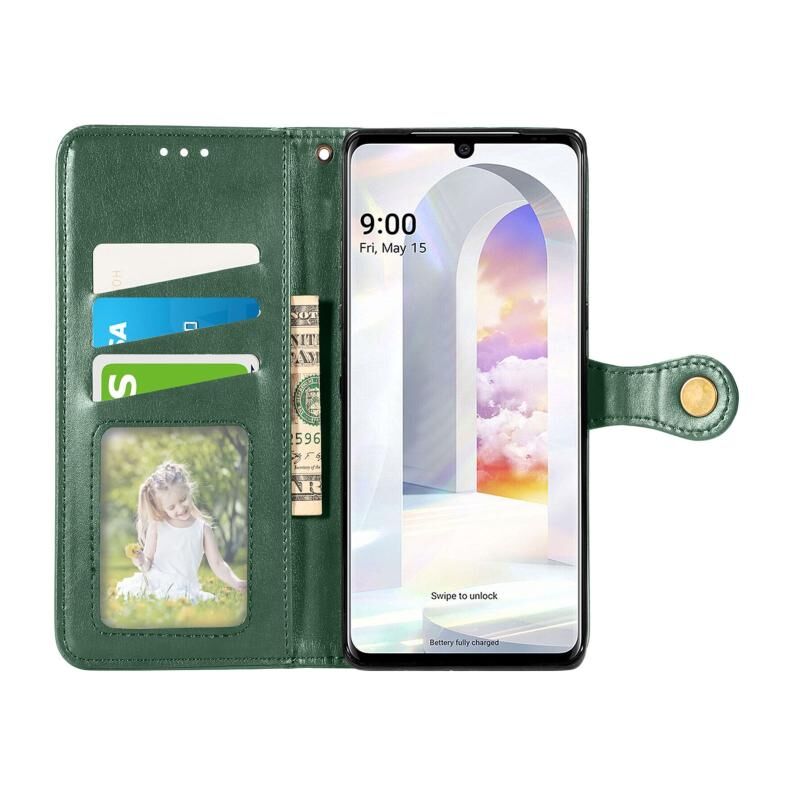 Για LG Velvet 2 Pro Solid Color δέρμα αγκράφα τηλέφωνο υπόθεση με κορδόνι & πλαίσιο φωτογραφιών & υποδοχή κάρτας & πορτοφόλι & Stand λειτουργία (πράσινο)