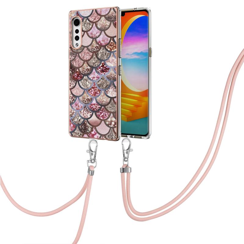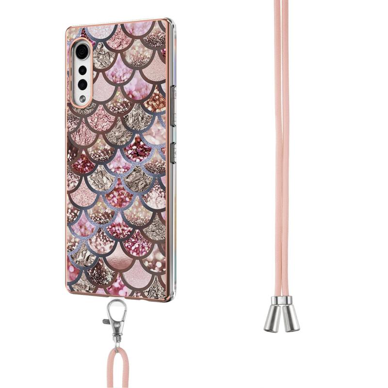 Θήκη προστασίας IMD TPU αντικραδασμική με γαλβανισμένο σχέδιο για LG Velvet 4G / Velvet 5G / G9 με κορδόνι λαιμού (Ροζ Λέπια)