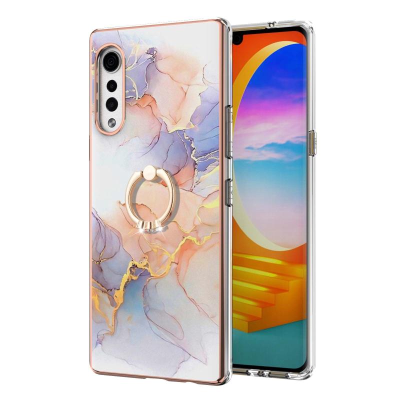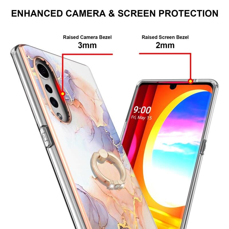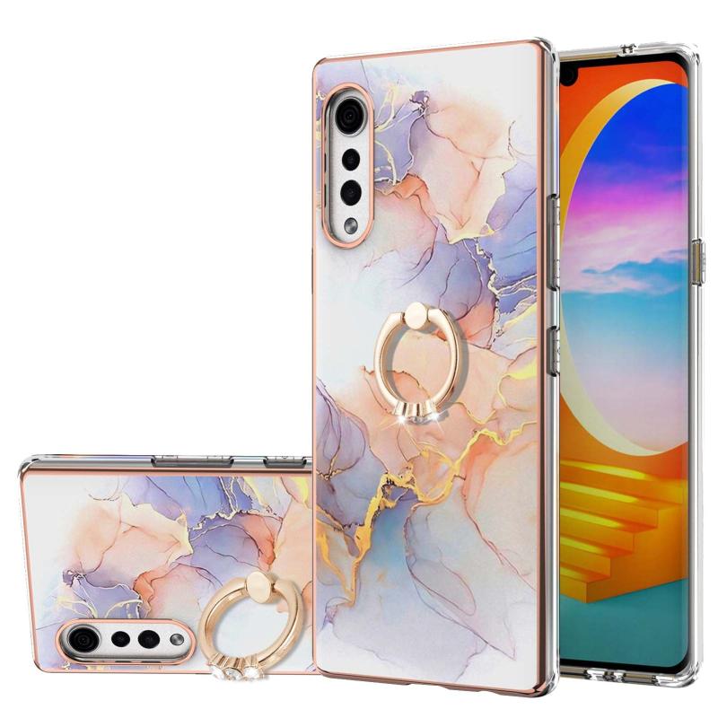 Θήκη προστασίας IMD TPU αντικραδασμική με σχέδιο επιμετάλλωσης για LG Velvet 4G / Velvet 5G / G9 με δαχτυλίδι στήριξης και ρητίνες (Λευκό μάρμαρο Γαλαξία (Levko marmaro Galaxia)) (Λευκό μάρμαρο Γαλαξία (Levko marmaro Galaxia))