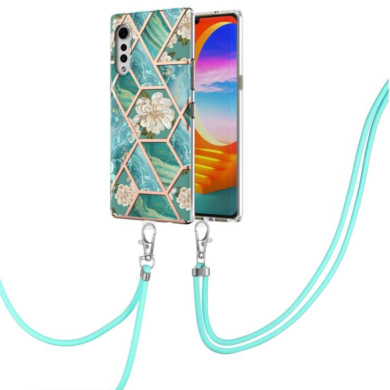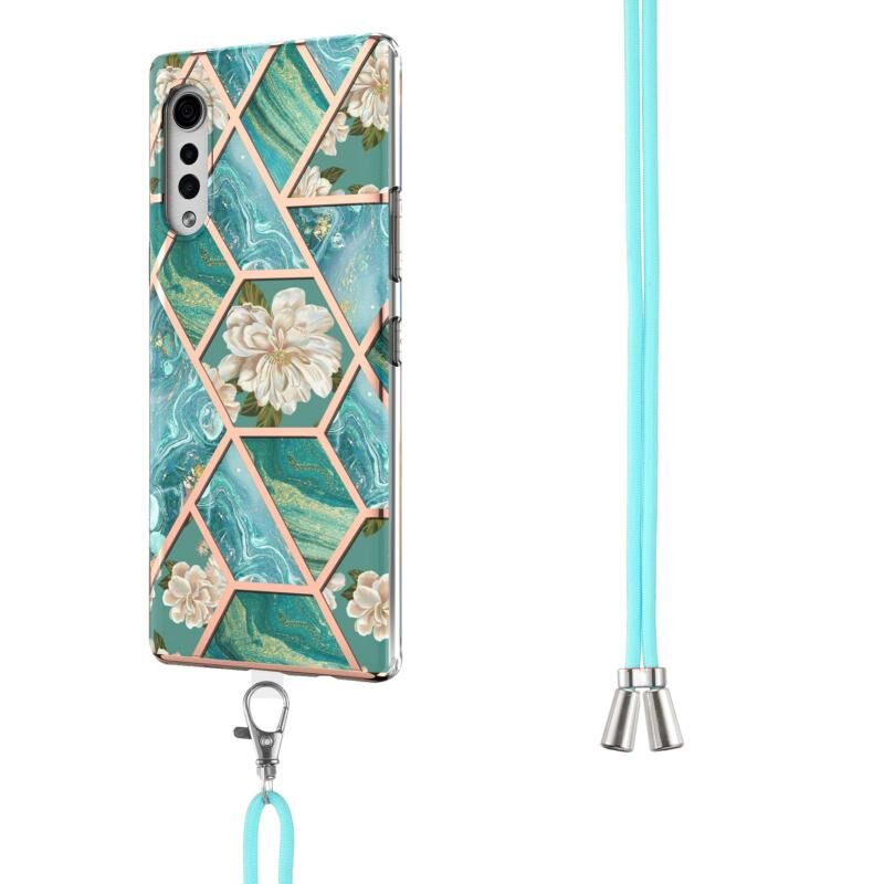 Για LG Velvet 4G / Velvet 5G / G9 Ηλεκτρολυτική Επικάλυψη, Συνδυασμός Μαρμάρου, Ανθεκτική Θήκη TPU με Λουρί (Μπλε λουλούδι)