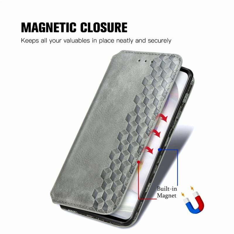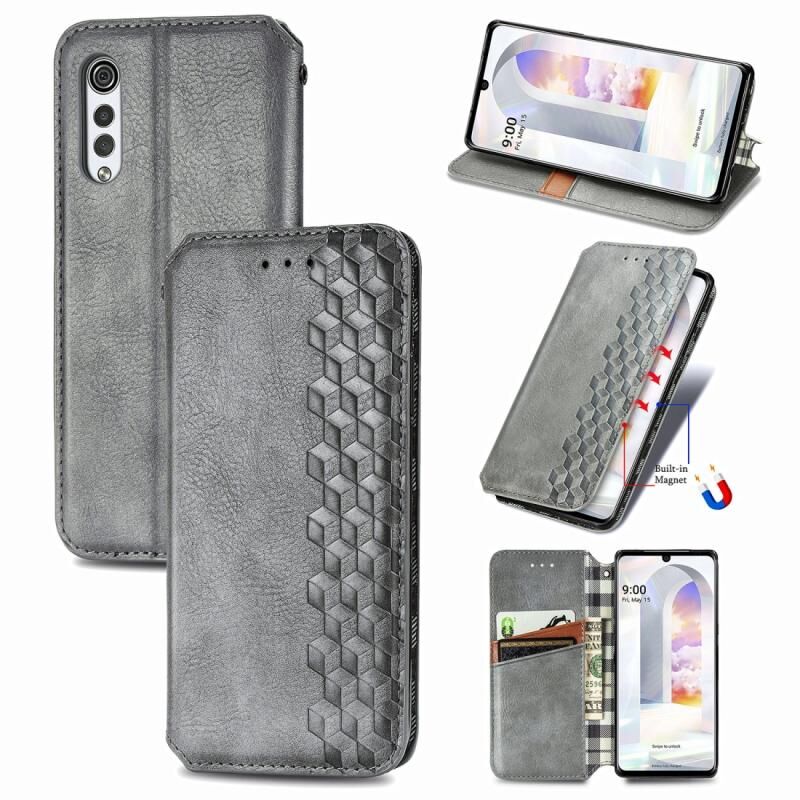 Για LG Velvet 5G Cubic Grid Πιεσμένο οριζόντια Flip μαγνητική PU δέρμα υπόθεση με θήκη & υποδοχές για κάρτες & πορτοφόλι (γκρι)