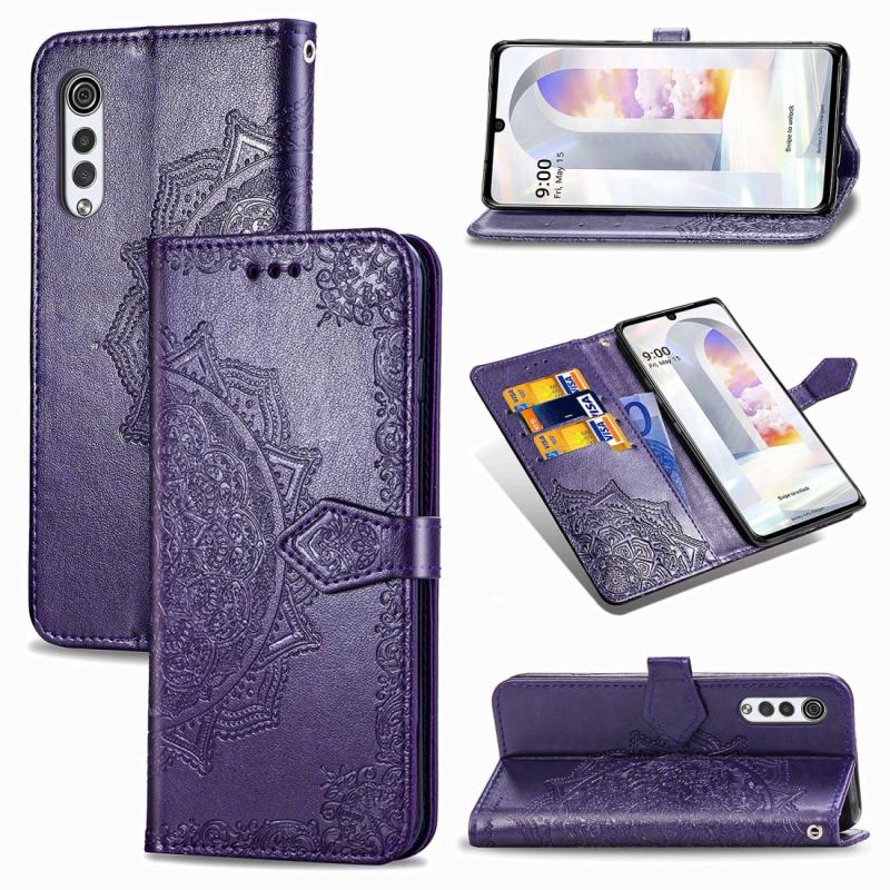 For LG Velvet 5G Mandala Flower Embossed Horizontal Flip Leather Case with Bracket / Card Slot / Wallet / Lanyard(Purple)