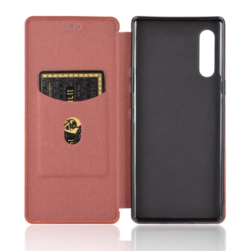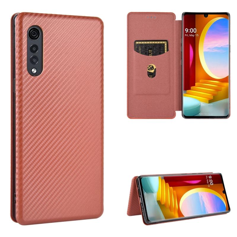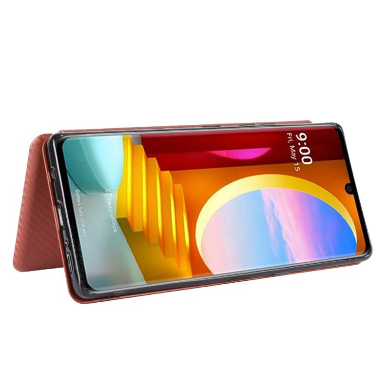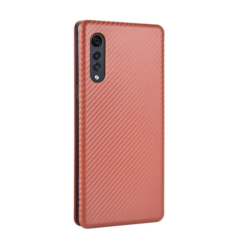 For LG Velvet Carbon Fiber Texture Horizontal Flip TPU + PC + PU Leather Case with Card Slot(Brown)