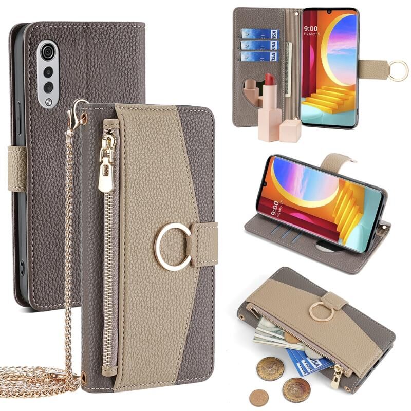 Για LG Velvet Crossbody Litchi Υφή δέρμα τηλέφωνο υπόθεση (γκρι)