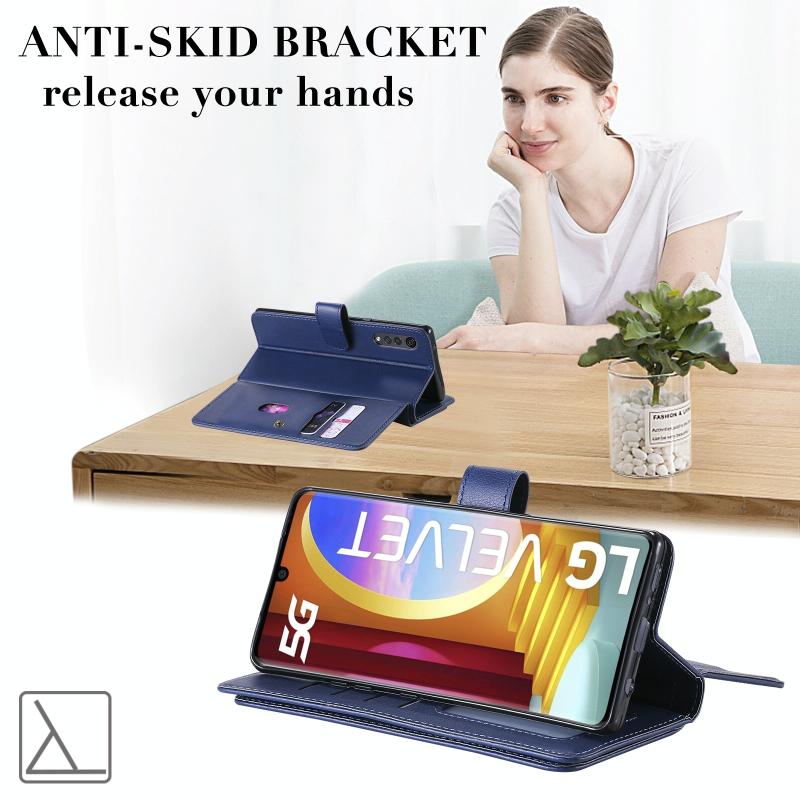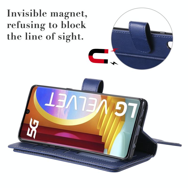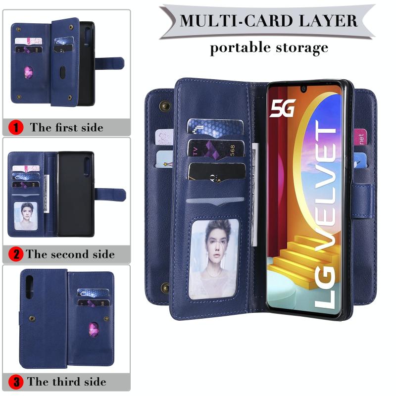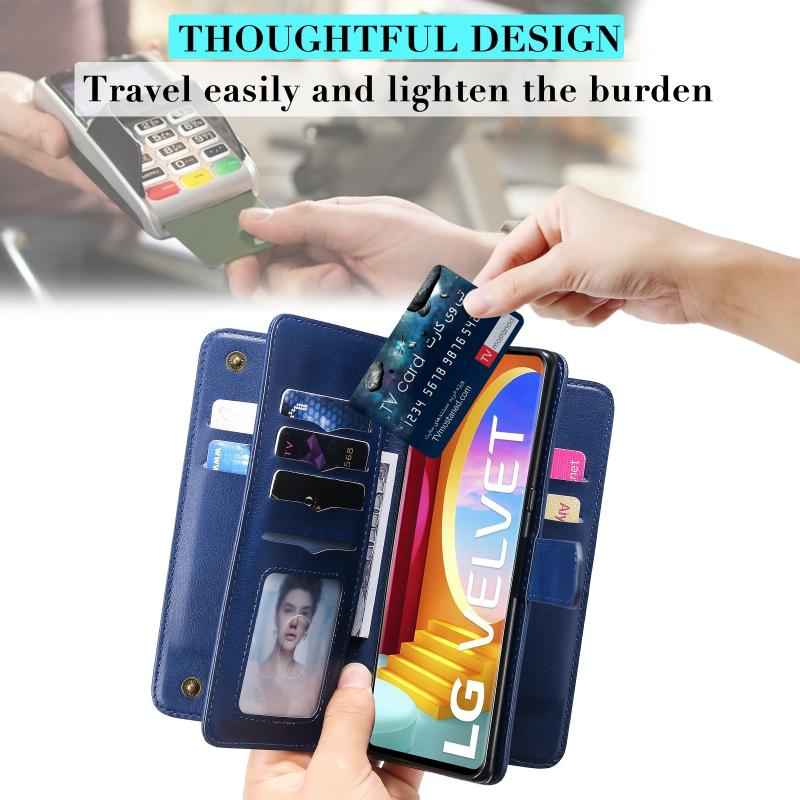 Θήκη για LG Velvet / G9, πολυλειτουργική μαγνητική θήκη από δέρμα με αγκράφα από χαλκό, οριζόντια, μονόχρωμη, με 10 υποδοχές για κάρτες, πορτοφόλι, βάση & κορνίζα φωτογραφιών (Χρυσό Ρόδι)