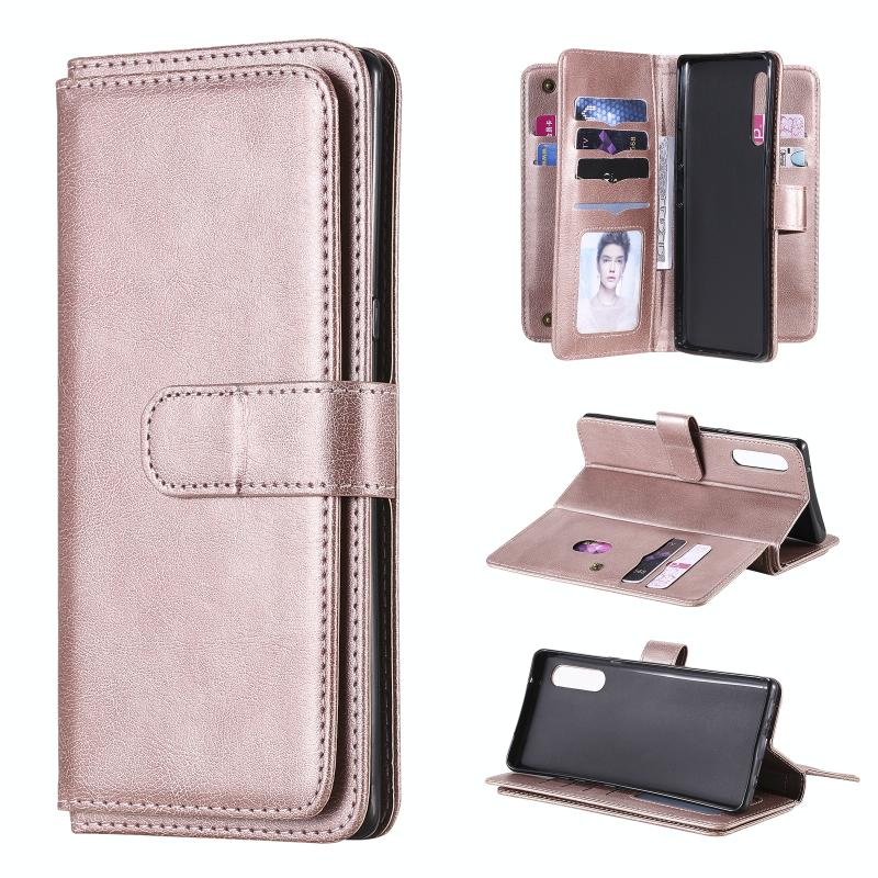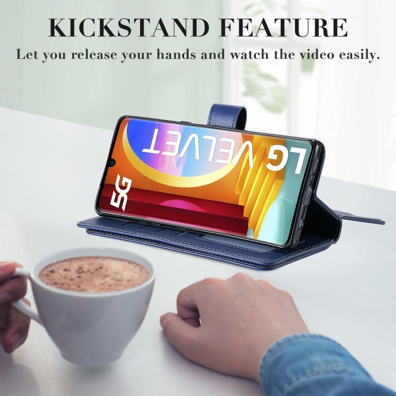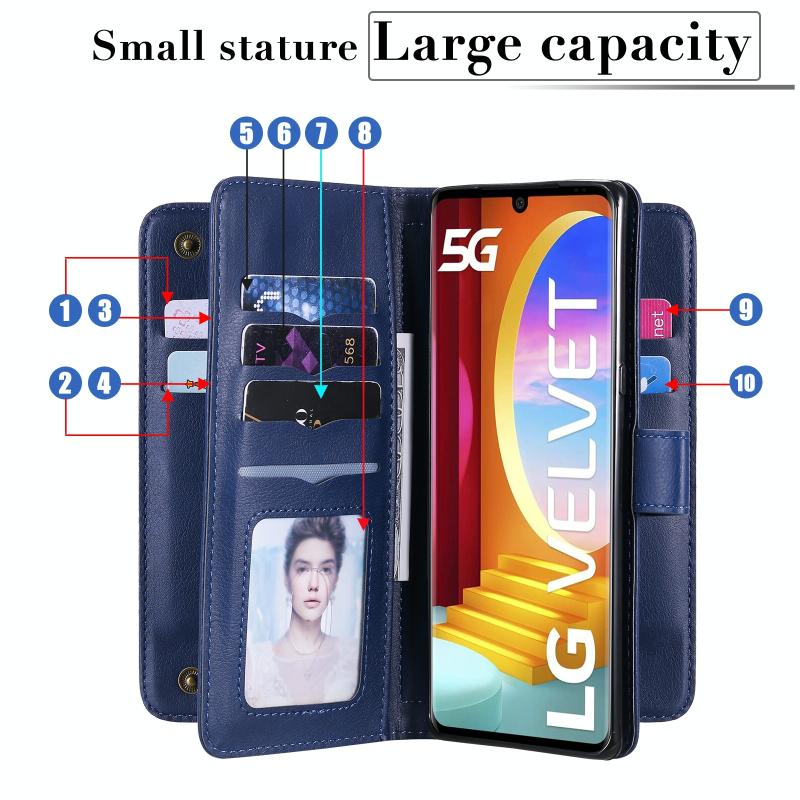 Θήκη για LG Velvet / G9, πολυλειτουργική μαγνητική θήκη από δέρμα με αγκράφα από χαλκό, οριζόντια, μονόχρωμη, με 10 υποδοχές για κάρτες, πορτοφόλι, βάση & κορνίζα φωτογραφιών (Χρυσό Ρόδι)