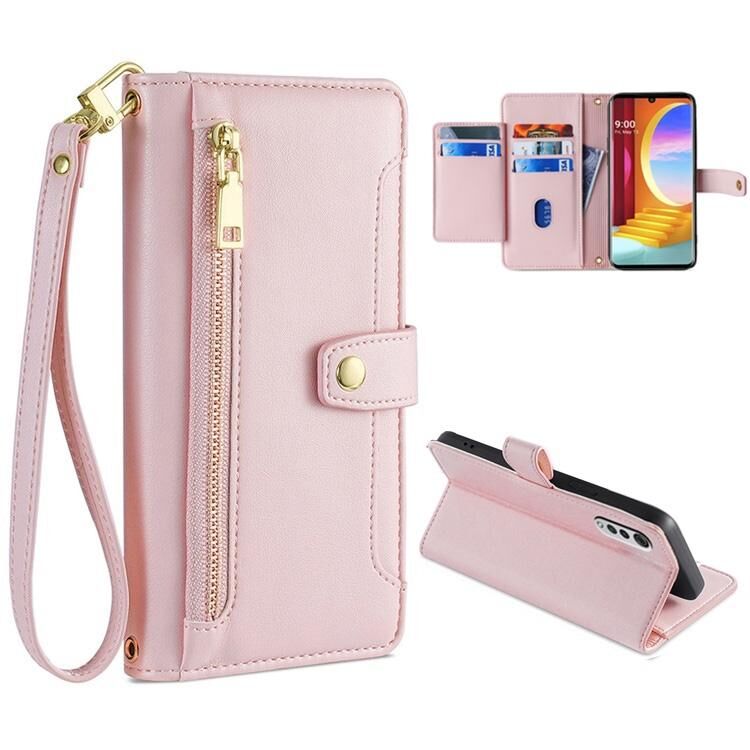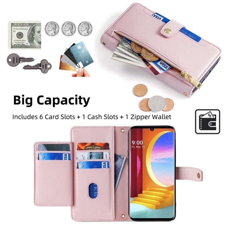 Θήκη τηλεφώνου δερμάτινη με υφή προβάτου, διασχίζουσα, με φερμουάρ και θήκη πορτοφολιού για LG Velvet (Μαύρο)