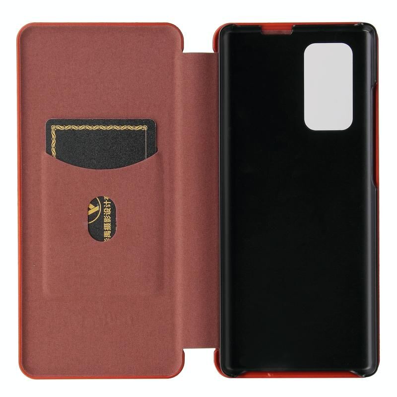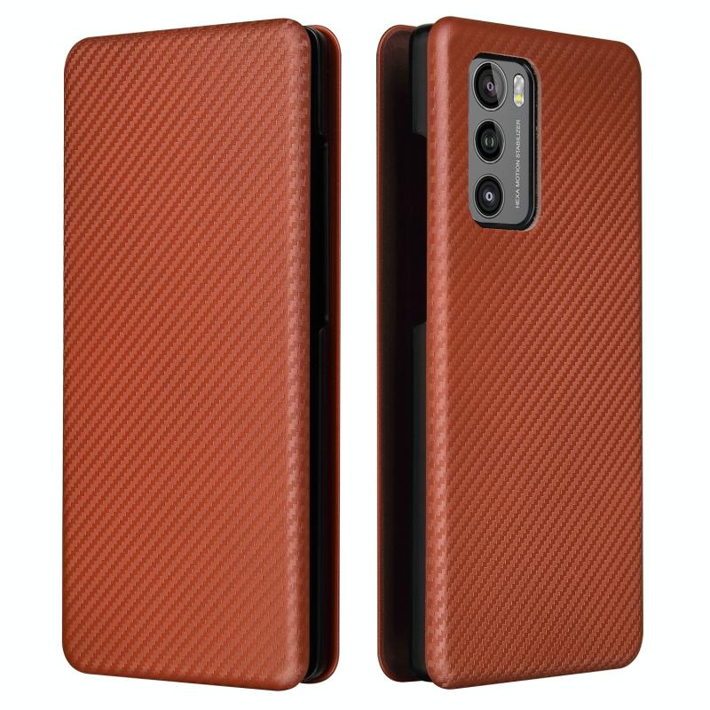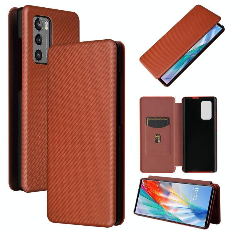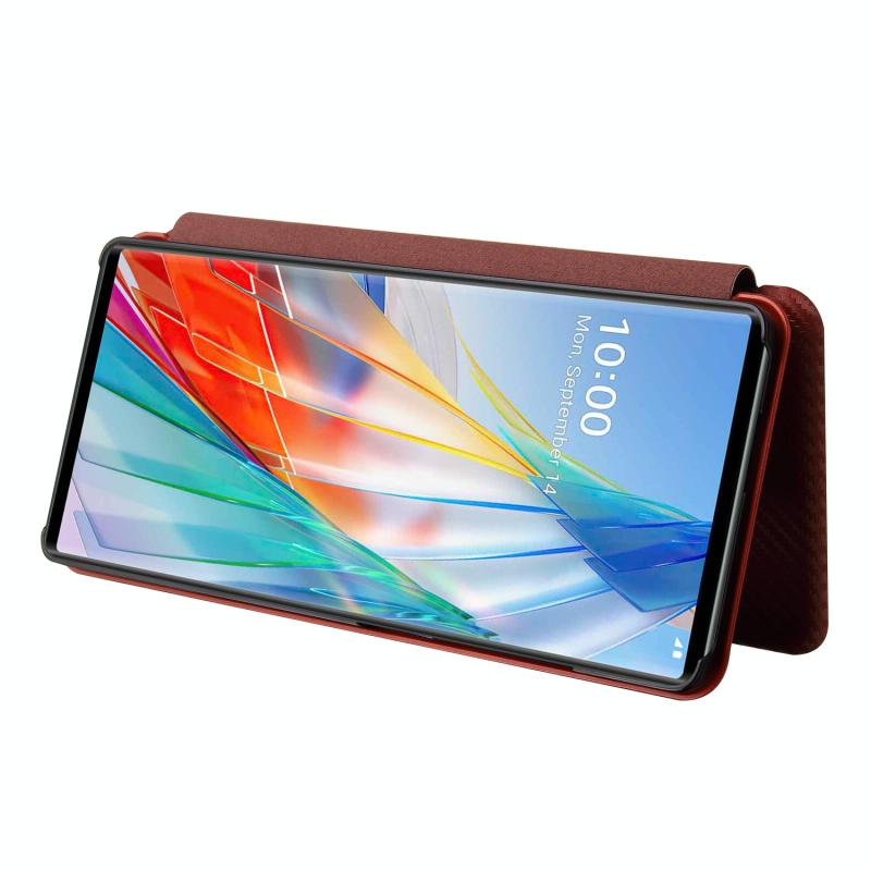 For LG Wing 5G Carbon Fiber Texture Horizontal Flip TPU + PC + PU Leather Case with Card Slot(Brown)