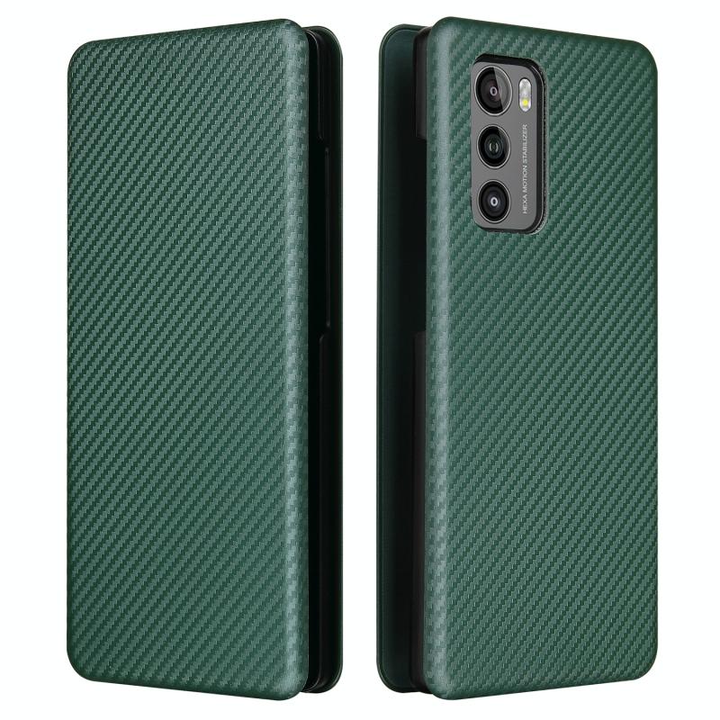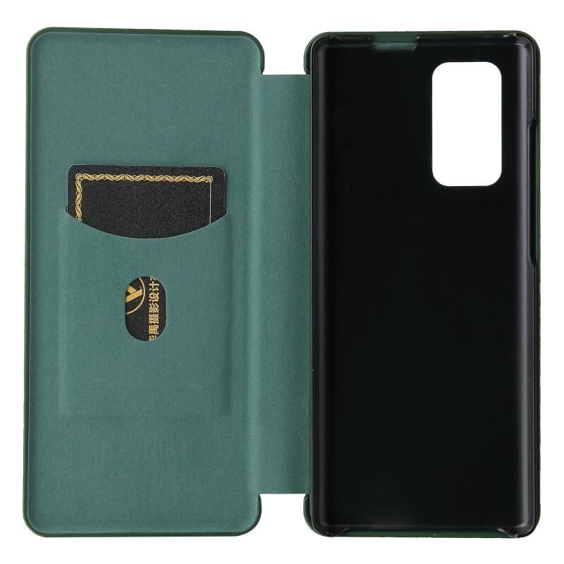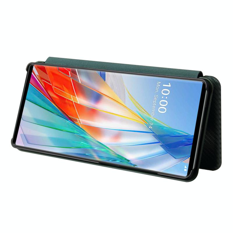 For LG Wing 5G Carbon Fiber Texture Horizontal Flip TPU + PC + PU Leather Case with Card Slot(Green)
