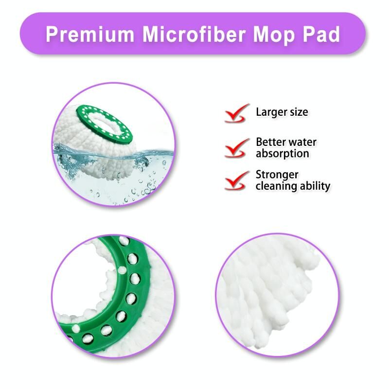 2. The mop head is made of highly absorbent microfiber. The oversized mop head covers a larger area, absorbs and removes more moisture, and dries the floor quickly.