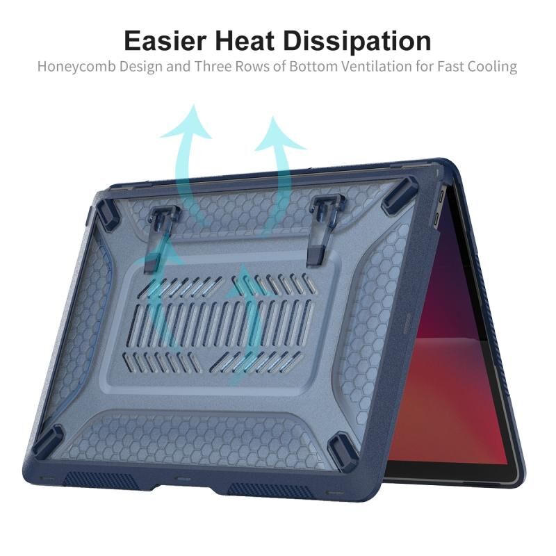 3. Θήκη δύο τεμαχίων, εύκολη στην εγκατάσταση και αφαίρεση. Τέσσερα λαστιχένια ποδαράκια κρατούν τον φορητό υπολογιστή σταθερό και ασφαλή. Το κάτω κέλυφος είναι αεριζόμενο για να διευκολύνει τη διάχυση της θερμότητας.
