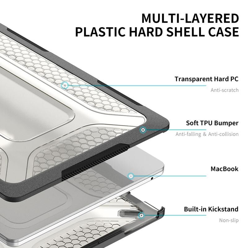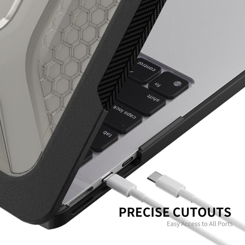3. Θήκη δύο τεμαχίων, εύκολη στην εγκατάσταση και αφαίρεση· τέσσερα λαστιχένια ποδαράκια κρατούν τον φορητό υπολογιστή σταθερό και ασφαλή· το κάτω κέλυφος είναι αεριζόμενο για να διευκολύνει τη διάχυση της θερμότητας.