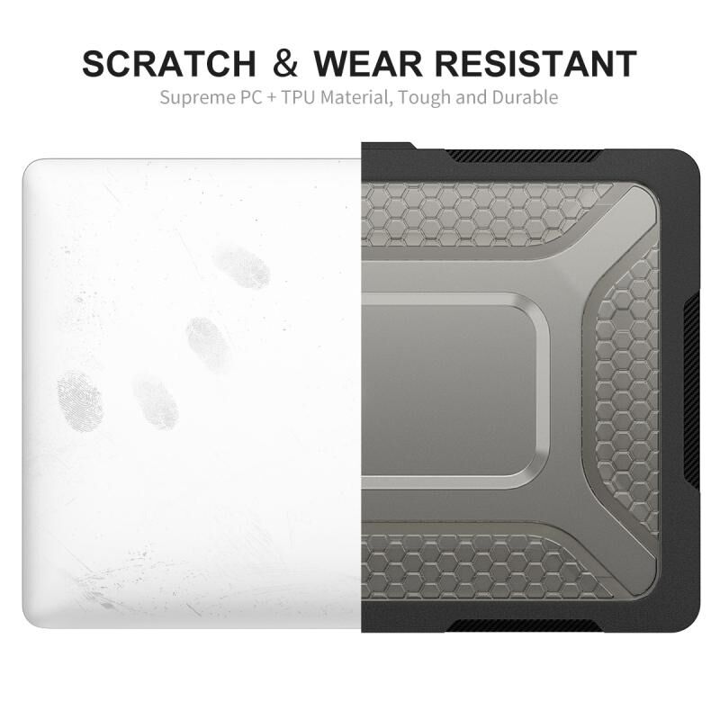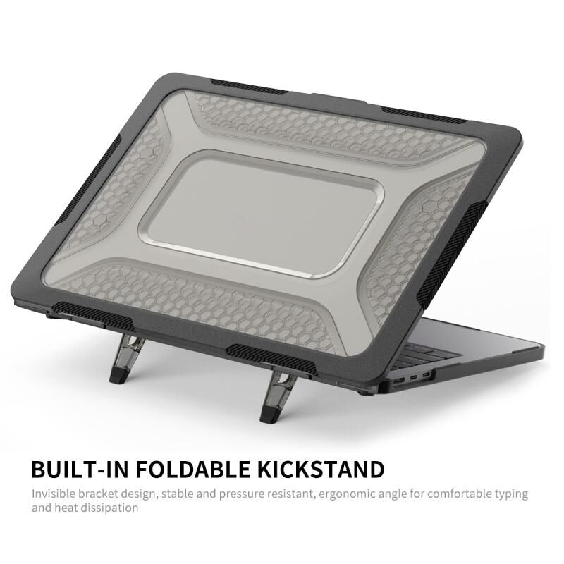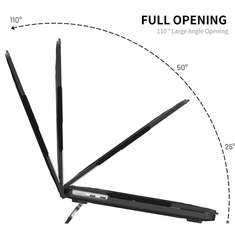 3. Θήκη δύο τεμαχίων, εύκολη στην εγκατάσταση και αφαίρεση. Τέσσερα λαστιχένια ποδαράκια κρατούν τον φορητό υπολογιστή σταθερό και ασφαλή. Το κάτω κέλυφος είναι αεριζόμενο για να διευκολύνει τη διάχυση της θερμότητας.
