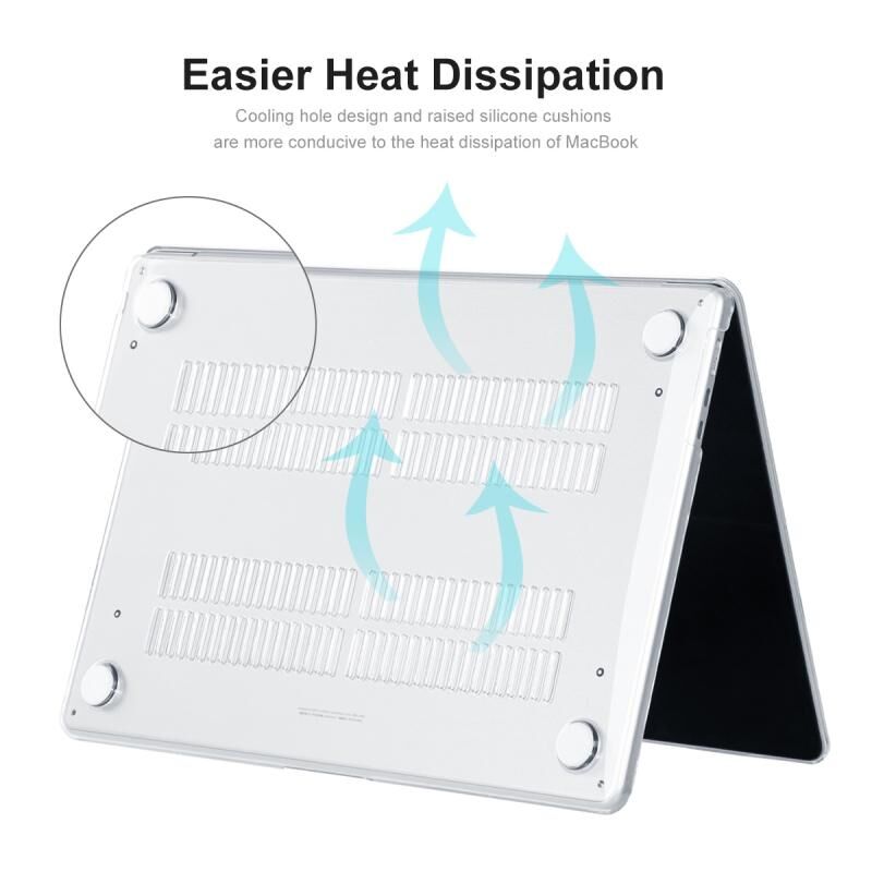 3. Σχεδιασμός δύο τεμαχίων για εύκολη εγκατάσταση και αφαίρεση. Τέσσερα λαστιχένια ποδαράκια κρατούν τον φορητό υπολογιστή σταθερό και ασφαλή. Κάτω κάλυμμα θήκης με αεραγωγούς για αποβολή θερμότητας.