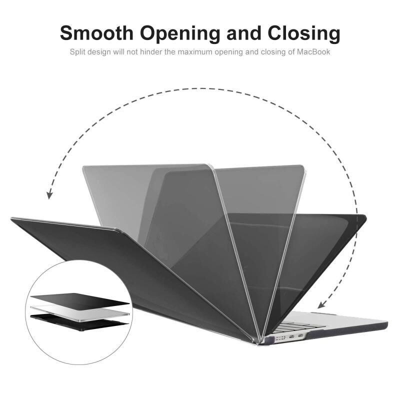 3. Σχεδιασμός δύο τεμαχίων για εύκολη εγκατάσταση και αφαίρεση. Τέσσερα λαστιχένια ποδαράκια κρατούν τον φορητό υπολογιστή σταθερό και ασφαλή. Κάτω κάλυμμα θήκης με αεραγωγούς για αποβολή θερμότητας.