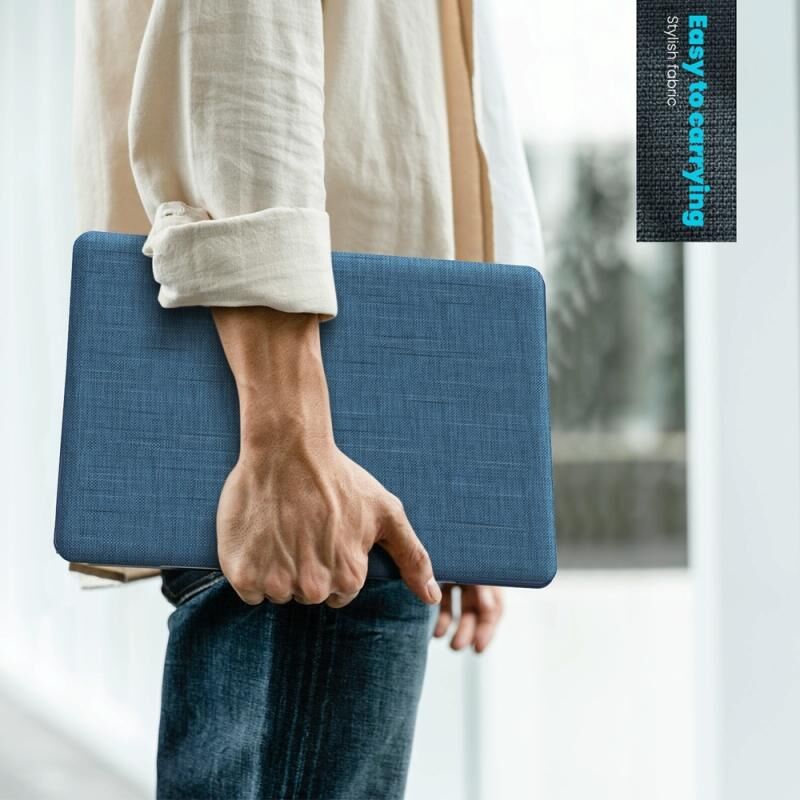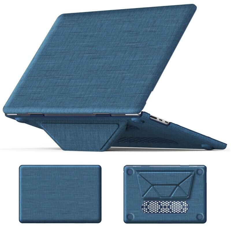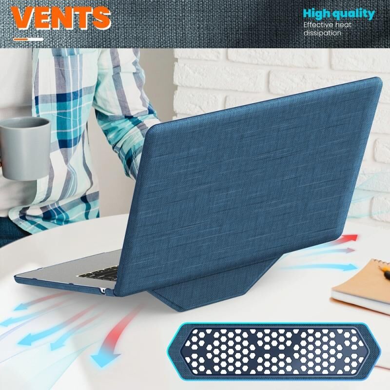 For MacBook Air 15.3 inch A3114 / A2941 Fabric Magnetic Holder Laptop Protective Case(Navy Blue)