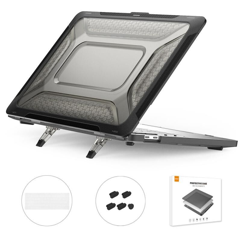 3. Θήκη δύο τεμαχίων, εύκολη στην εγκατάσταση και αφαίρεση· τέσσερα λαστιχένια ποδαράκια κρατούν τον φορητό υπολογιστή σταθερό και ασφαλή· το κάτω κέλυφος είναι αεριζόμενο για να διευκολύνει τη διάχυση της θερμότητας.