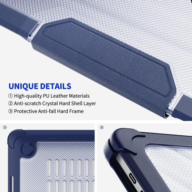 3. Εύκολη εγκατάσταση και αφαίρεση· τέσσερα λαστιχένια ποδαράκια κρατούν τον φορητό υπολογιστή σταθερό και ασφαλή· το κάτω κάλυμμα θήκης αερίζεται για εύκολη απαγωγή θερμότητας.