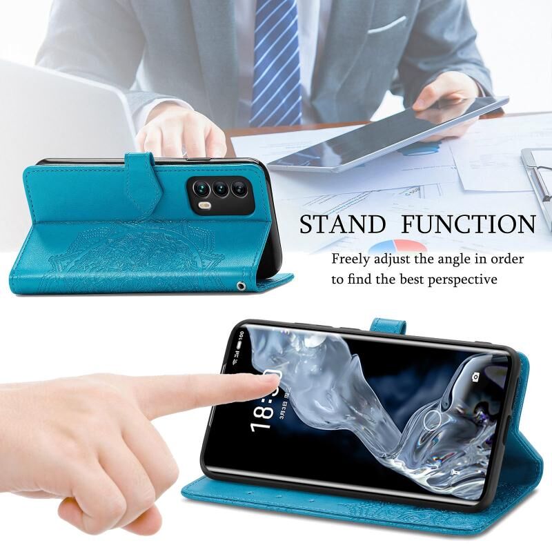 Για Meizu 18 Mandala λουλούδι ανάγλυφο οριζόντια Flip δερμάτινη θήκη με κάτοχο & τρεις υποδοχές για κάρτες & πορτοφόλι & κορδόνι (μπλε)