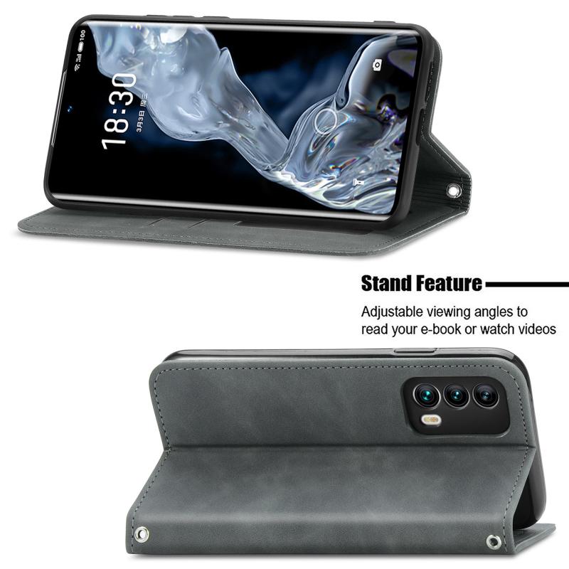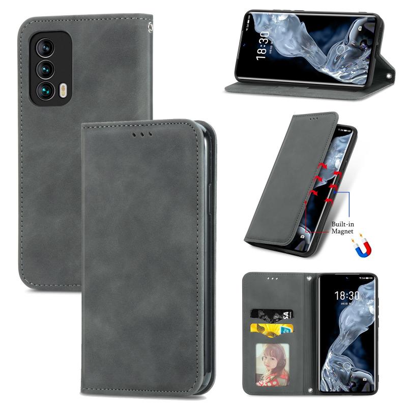 For Meizu 18 Retro Skin Feel Business Magnetic Horizontal Flip Leather Case With Holder & Card Slots & Wallet & Photo Frame(Gray)