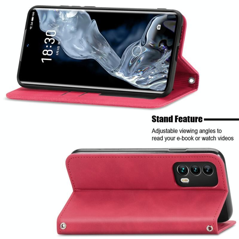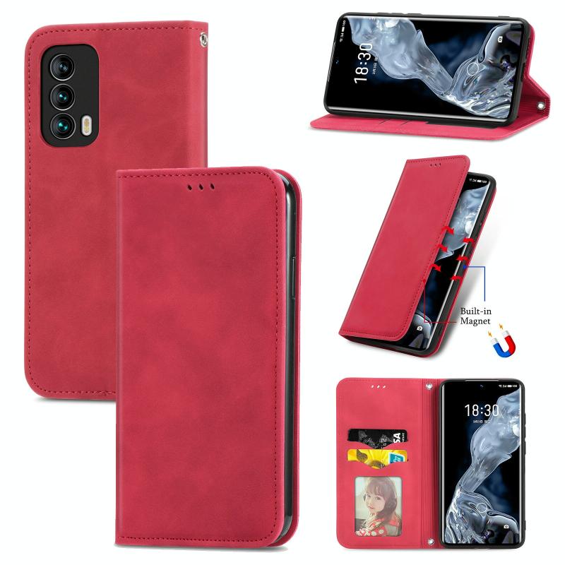 For Meizu 18 Retro Skin Feel Business Magnetic Horizontal Flip Leather Case With Holder & Card Slots & Wallet & Photo Frame(Red)